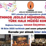 TMMOB Jeoloji Mühendisleri Odası Türk Halk Müziği Korosu, Bağlama Sanatçısı Hasan Özçırpan şefliğinde yeni sezon çalışmalarına başlayacaktır.