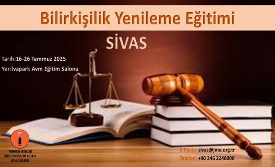Bilirkişilik Temel Eğitimi Sivas`ta,27-28 Haziran/5-6 Temmuz 2025 tarihleri arasında,İvapark Avm eğitim salonunda gerçekleşecektir.