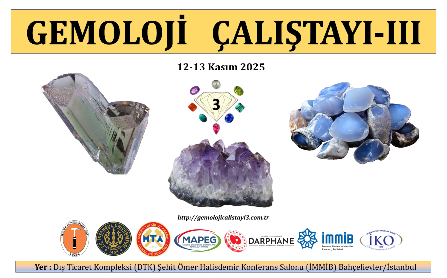12-13 Kasım 2025 tarihleri arasında düzenlenecek olan III. Gemoloji Çalıştayı’na tüm ilgili tüm kurum, kuruluş ve kişilerin bildirileri ile katılımını bekliyoruz.
