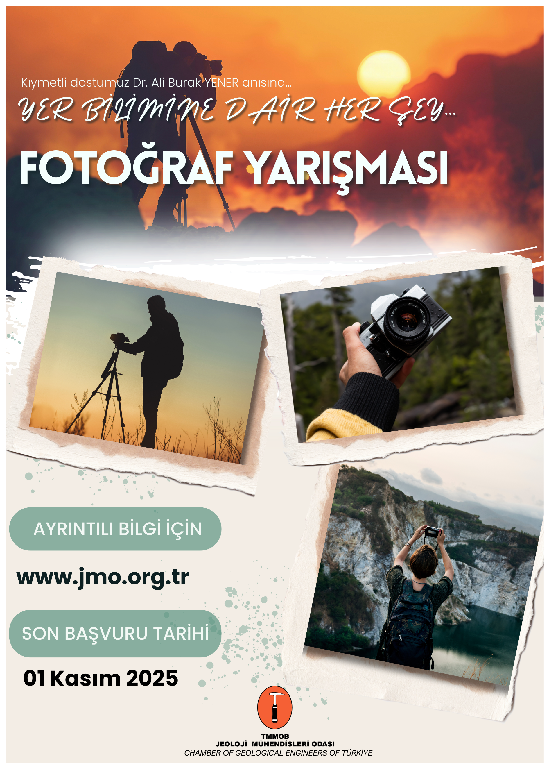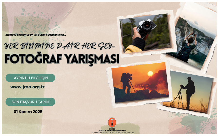 Bilim ve sanatın kesişiminde, yerbilimlerinin sunduğu estetik ve düşünsel zenginliğe ortak olmak için siz değerli meslektaşlarımızın katılımını bekliyoruz. Katılımınızla bu özel anı paylaşmanız bizleri onurlandıracaktır. Fotoğraflarınız fotografyarismasi@jmo.org.tr adresine gönderebilirsiniz.
