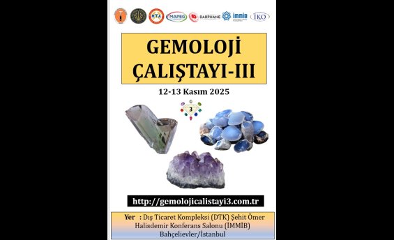 Gemoloji Çalıştayı-3, TMMOB Jeoloji Mühendisleri Odası İstanbul Şubesi, İstanbul Üniversitesi-Cerrahpaşa Jeoloji Mühendisliği Bölümü, Maden Tetkik ve Arama Genel Müdürlüğü (MTA), Maden ve Petrol İşleri Genel Müdürlüğü (MAPEG), Darphane ve Damga Matbaası Genel Müdürlüğü, İstanbul Maden ve Metaller İhracatçı Birlikleri (İMMİB), Mücevher İhracatçıları Birliği ve İstanbul Kuyumcular Odası (İKO) paydaşlığında, 12-13 Kasım 2025 tarihleri arasında, İMMİB-Dış Ticaret Kompleksi (DTK) Şehit Ömer Halisdemir Konferans Salonu’nda, İstanbul’da düzenlenecektir.