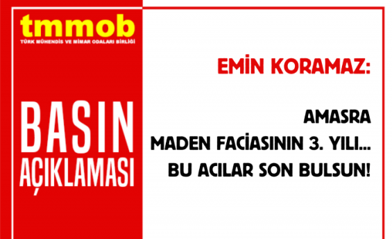 TMMOB Yönetim Kurulu Başkanı Emin Koramaz, 14 Ekim 2022 tarihinde yaşanan Amasra Maden faciasının 3. yıldönümü dolayısıyla 14 Ekim 2025 tarihinde bir basın açıklaması yaptı.