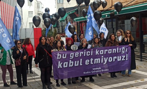 TMMOB 48. Dönem Kadın Çalışma Grubu, 25 Kasım Uluslararası Kadına Yönelik Şiddetle Mücadele Günü dolayısıyla MMO Eğitim ve Kültür Merkezi`nde kitlesel bir basın açıklaması yaptı.