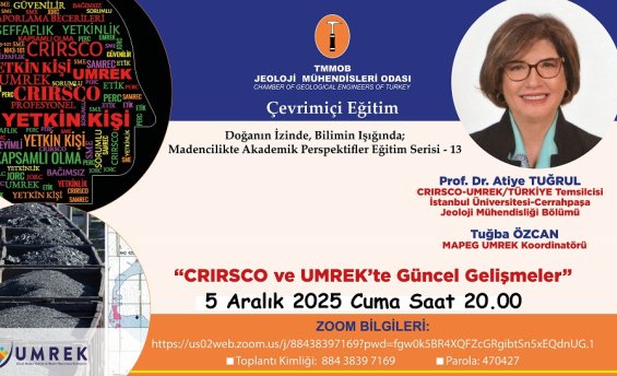 Madencilik Komisyonumuz tarafından Doğanın İzinde, Bilimin Işığında; Madencilikte Akademik Perspektifler Eğitim Serisi kapsamında "CRIRSCO ve UMREK’te Güncel Gelişmeler" başlıklı çevrimiçi eğitim düzenlenecektir.