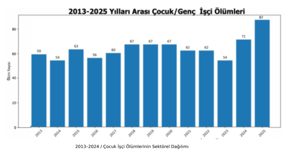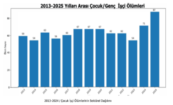 2025 yılında. 87 Çocuk/Genç işçi iş kazalarında hayatını kaybetmiş bulunmaktadır.