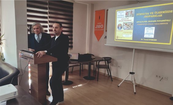 Şubemiz Söyleşileri kapsamında, Jeoloji Mühendisi Dr. Cemil Evirgen 7 Şubat 2026 tarihinde “Dünyada ve Ülkemizde Jeoparklar ve Antalya’nın Jeopark Potansiyeli” sunumunu gerçekleştirmiştir. Antalya`mızın ve ülkemizin jeolojik miraslarına sahip çıkıyoruz.