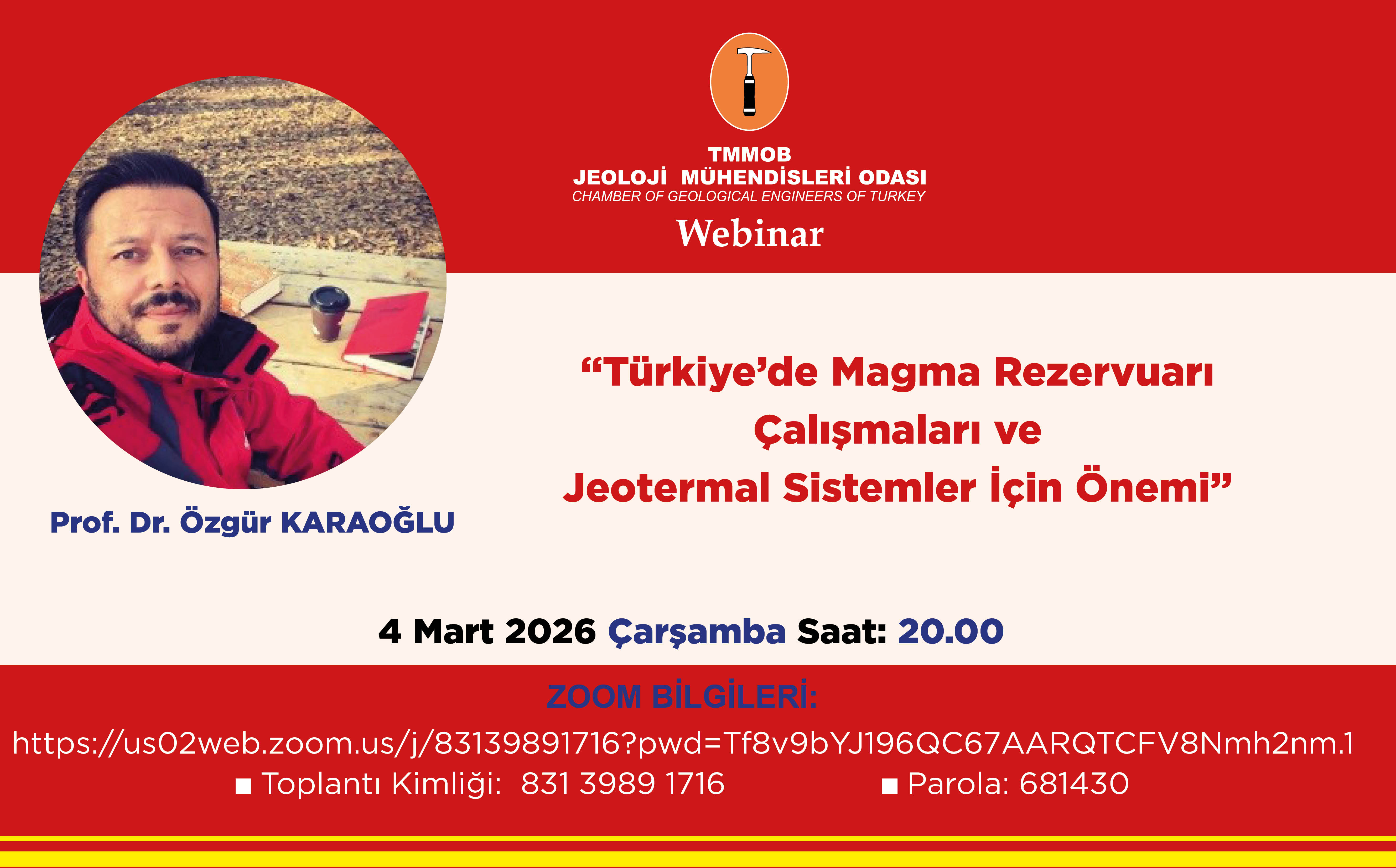 Jeotermal Komisyonumuz tarafından "Türkiye’de Magma Rezervuarı Çalışmaları ve Jeotermal Sistemler İçin Önemi” başlıklı çevrimiçi eğitim düzenlenecektir.