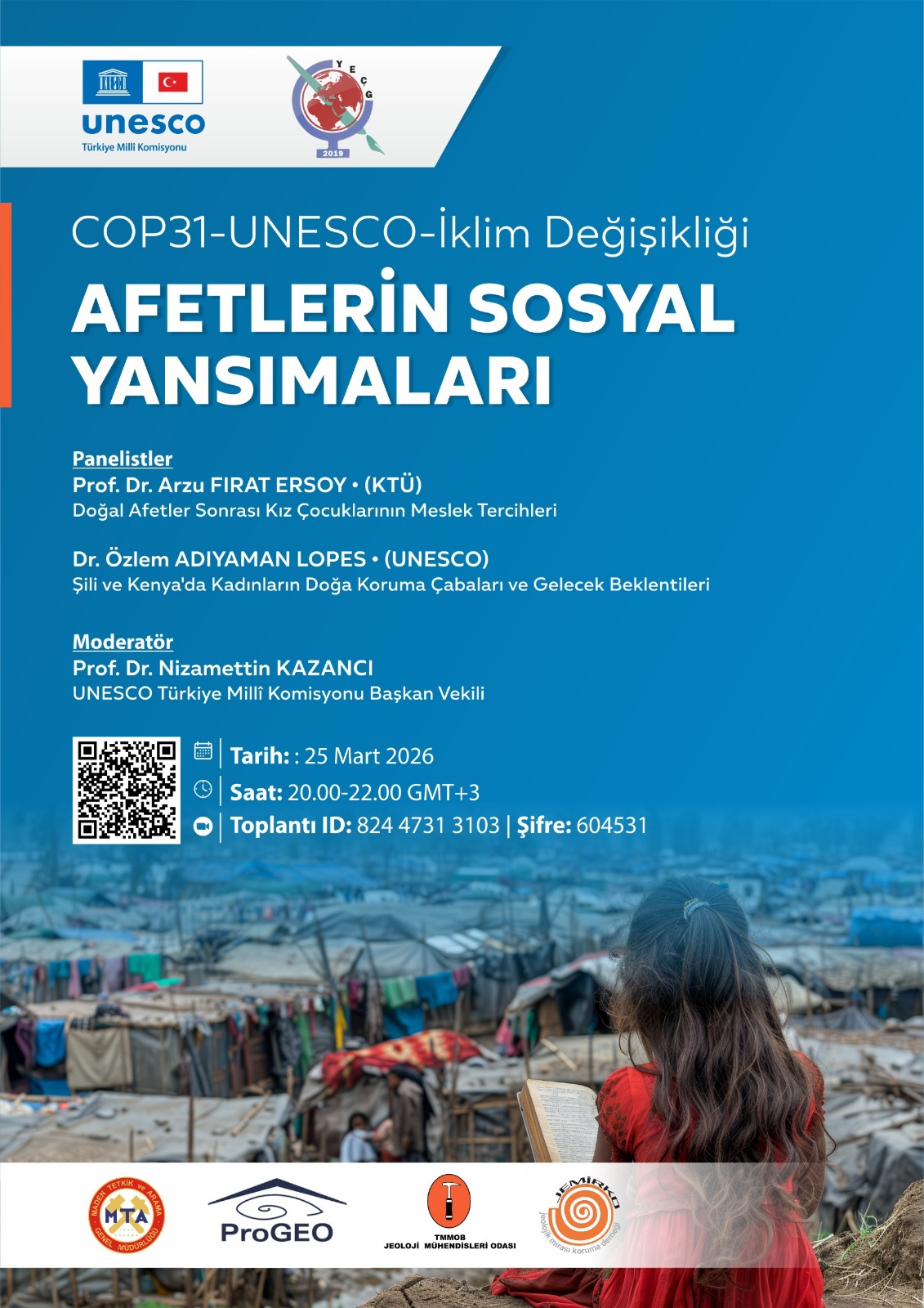 UNESCO Türk Milli Komisyonu ile Yerbilimleri Calışma Gurubu tarafından düzenlenen, MTA Genel Müdürlüğü, Avrupa Jeolojik Mirası Koruma Birliği (ProGEO), TMMOB Jeoloji Mühendisleri Odası, (TMMOB JMO) Jeolojik Mirası Koruma Derneği (JEMIRKO) tarafından desteklenen “Afetlerin Sosyal Yansımaları” konulu panel düzenlenecektir.