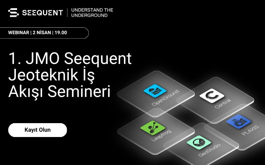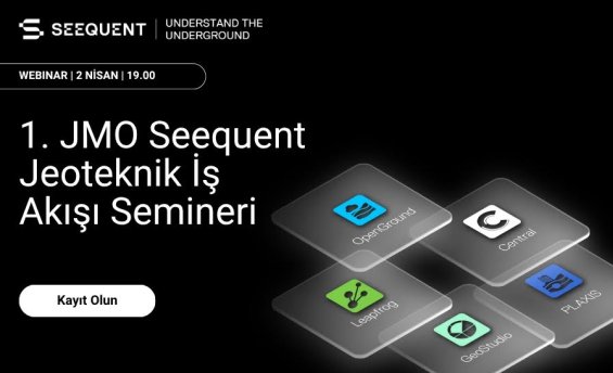 Odamız ve Seequent firması ortaklığında çevrimiçi (online) olarak 2 Nisan 2026 Perşembe günü saat 19.00’da Seequent Eğitmeni Yazgan KIRKAYAK tarafından ‘’1. JMO Seequent Jeoteknik İş Akışı Semineri’’ düzenlenecektir.